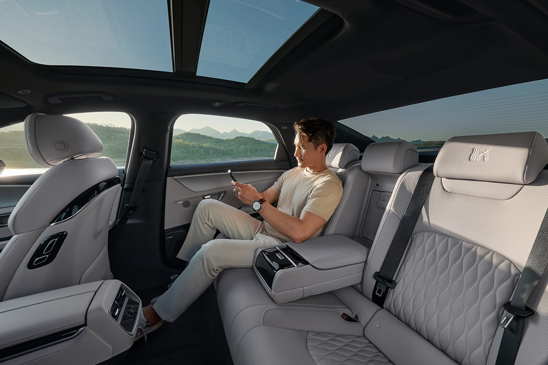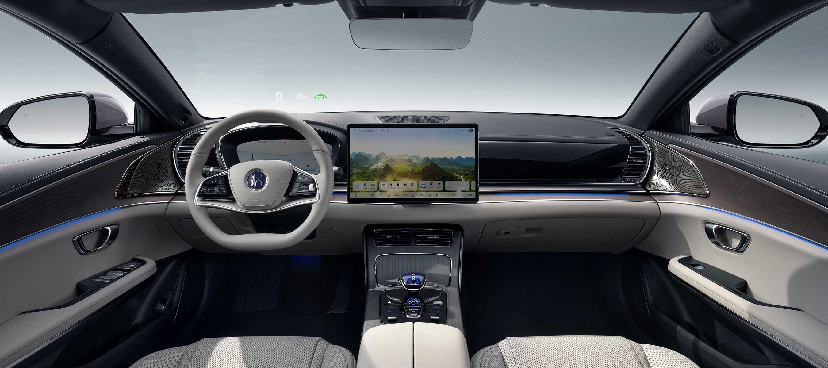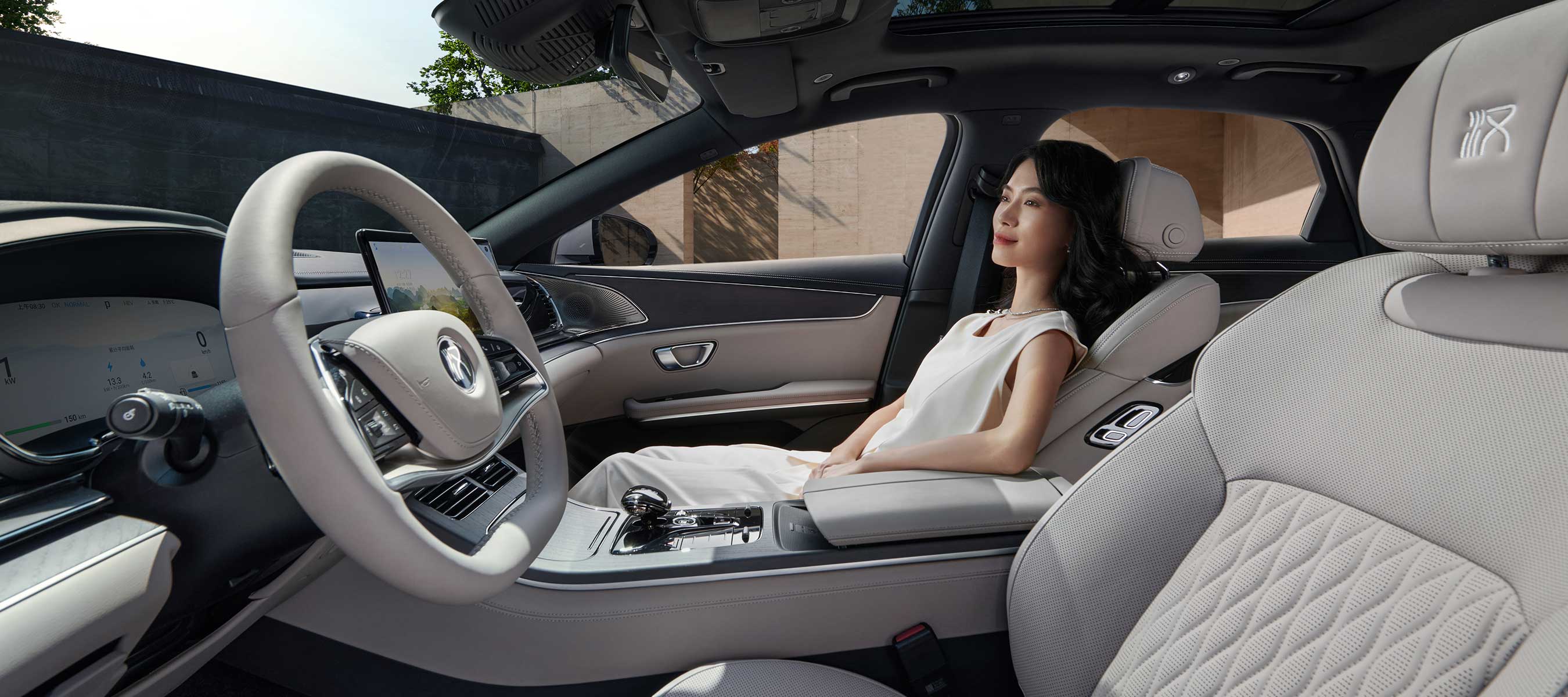 国际大师米开勒·帕加内蒂匠心打造,极具东方韵味的龙鳞纹皮革缝线纹路,诠释中式新豪华。真皮/真木/真铝豪华内饰材质,新奢体验,入座即享。