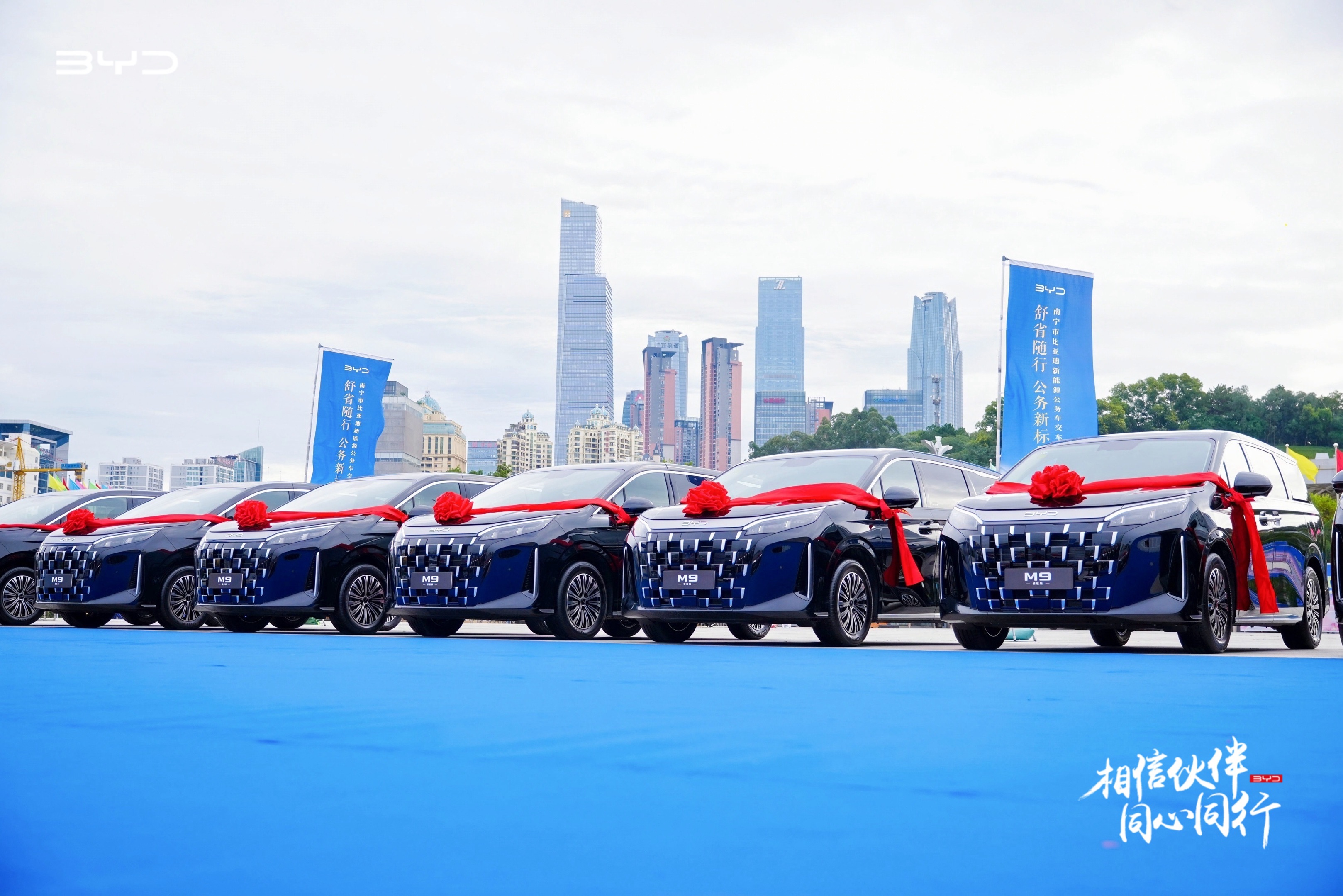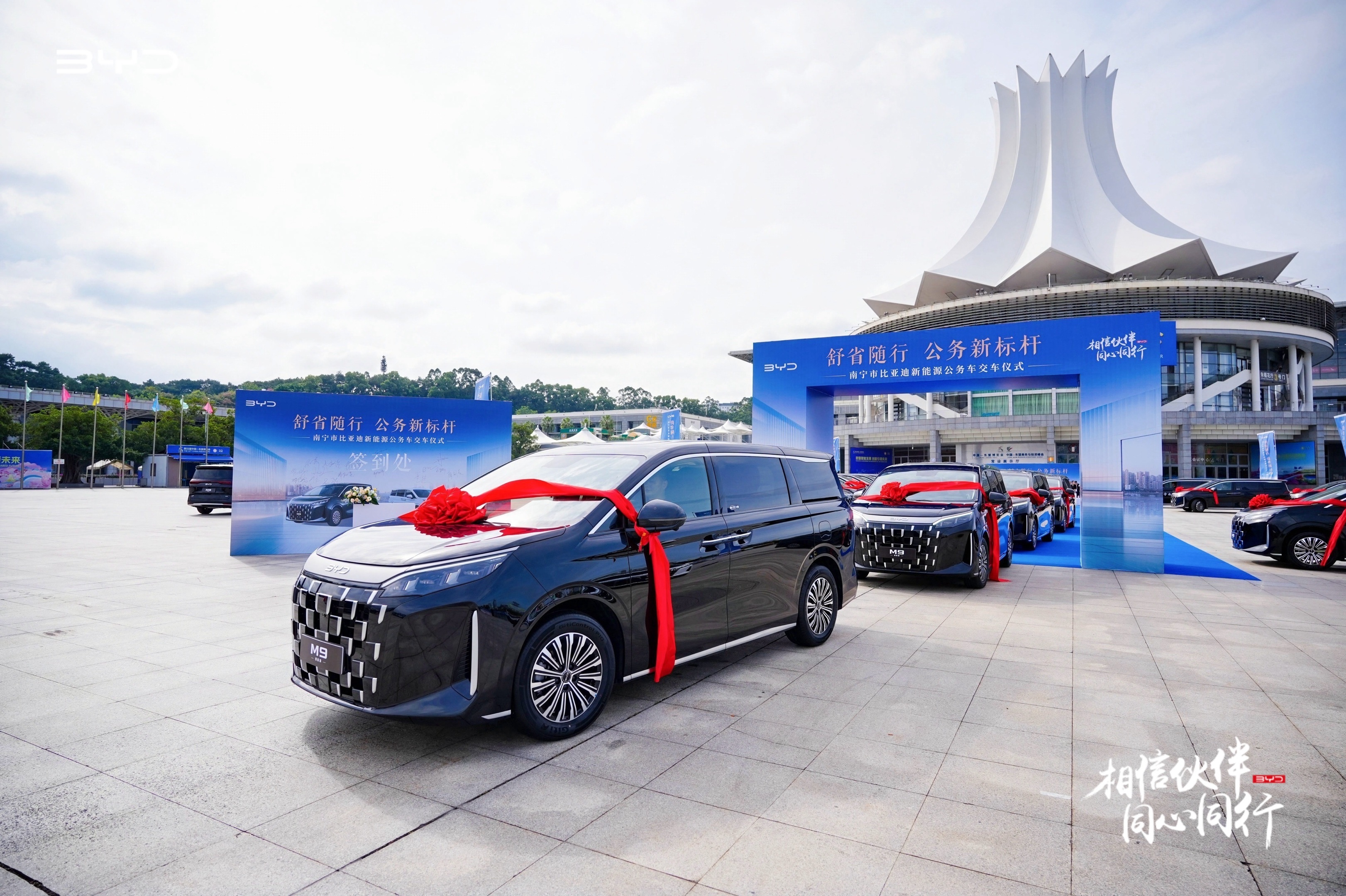 舒心驾乘,效能增倍 公务典范,卓尔不群 比亚迪M9公务车圆满交付 护航南宁公务出行,共绘绿色之城