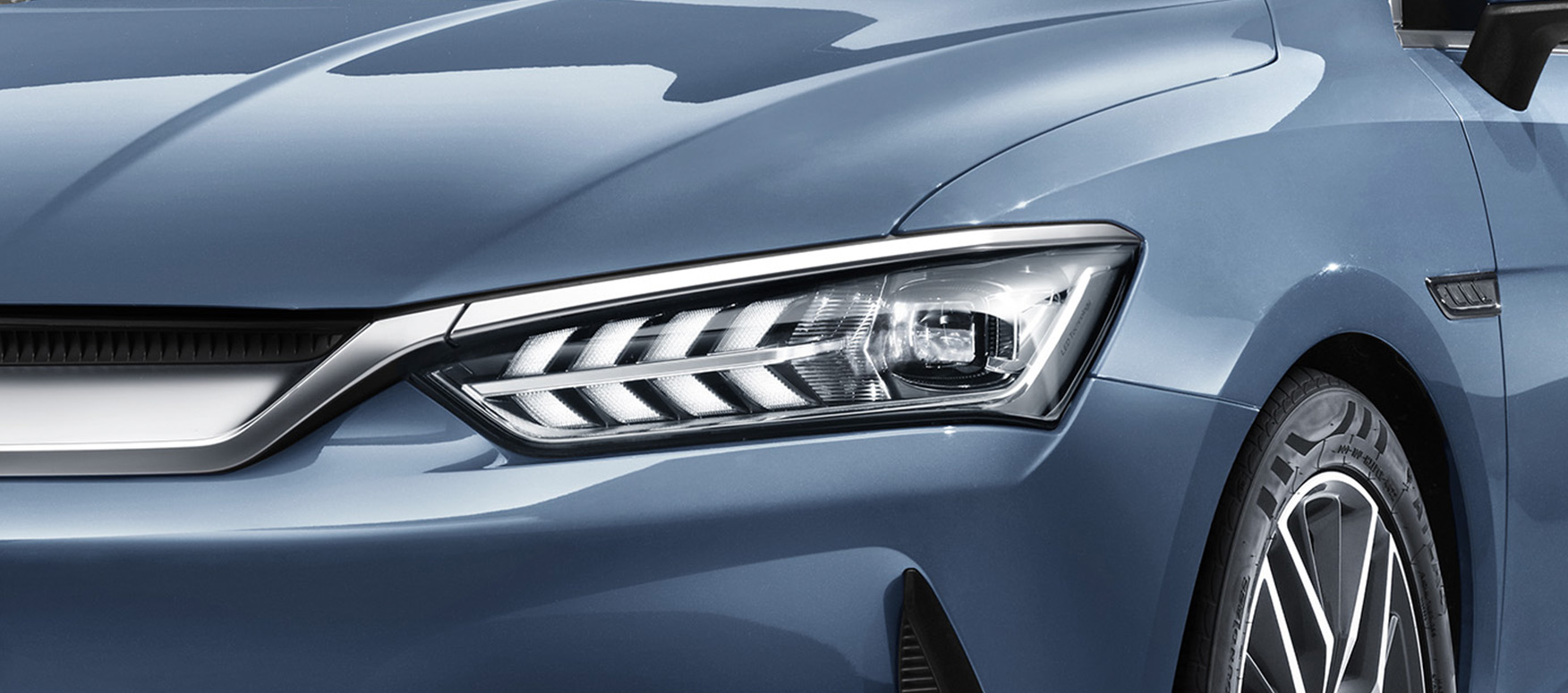 家族式EV Dragon Face 3.0设计语言 箭羽龙晴LED前大灯 封闭式前格棚前卫十足, 整体造型尽显科技感与运动感。